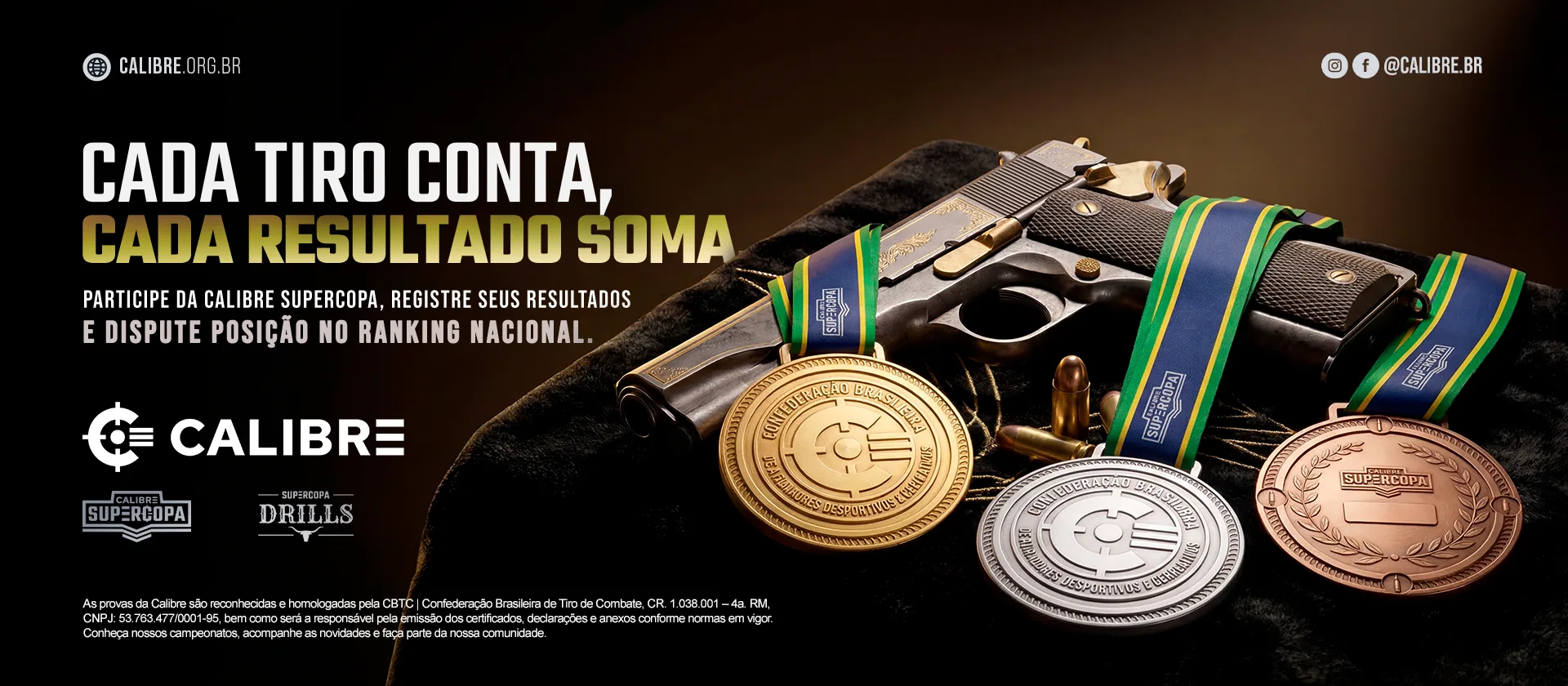 ✅ As provas da Calibre são reconhecidas e homologadas pela CBTC | Confederação Brasileira de Tiro de Combate, CR. 1.038.001 – 4a. RM, CNPJ: 53.763.477/0001-95, bem como será a responsável pela emissão dos certificados, declarações e anexos conforme normas em vigor.