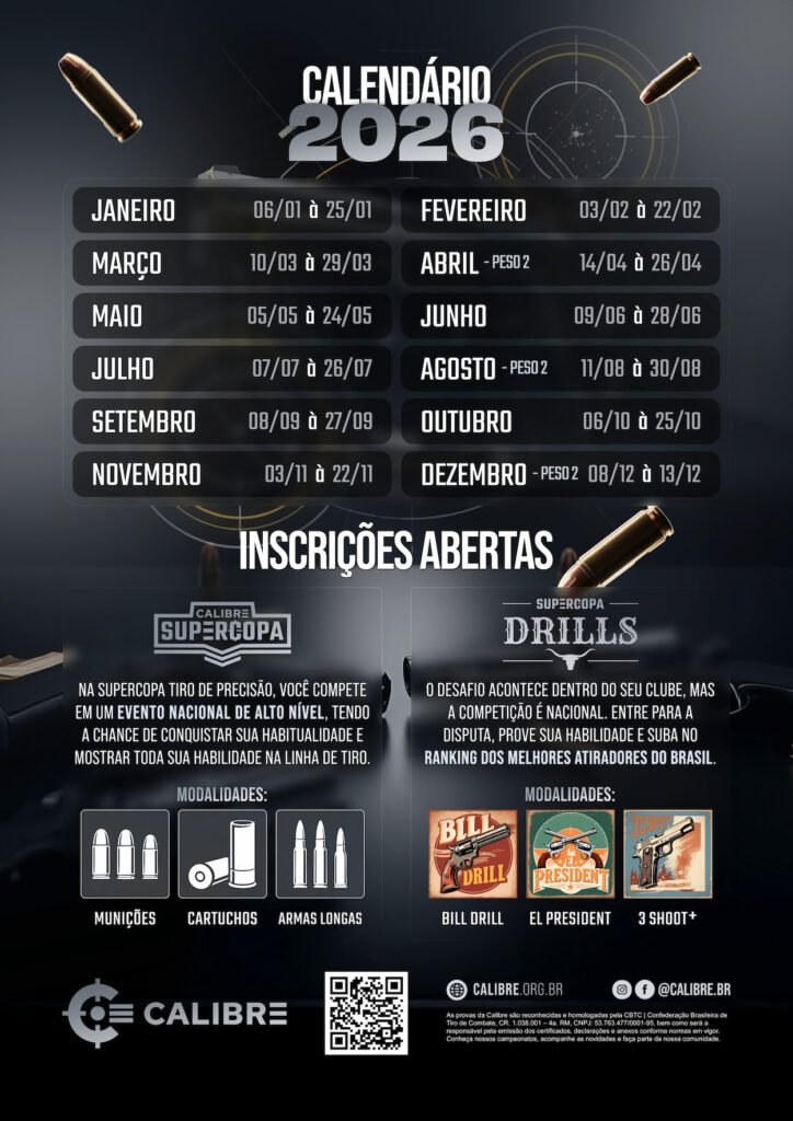 – Calibres: Todos os calibres de fogo central permitidos e restritos.