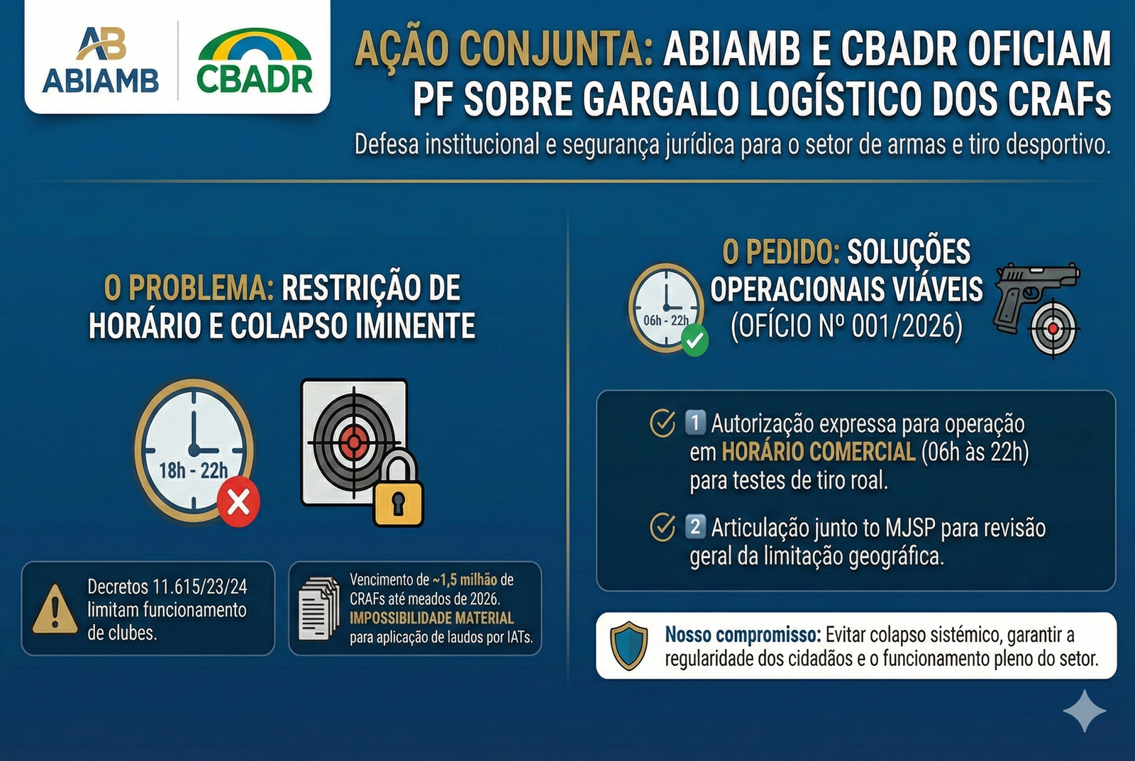 A Associação Brasileira de Importadores de Armas e Materiais Bélicos (ABIAMB), em atuação conjunta com a Confederação Brasileira de Atiradores Desportivos e Recreativos (CBADR), oficializou